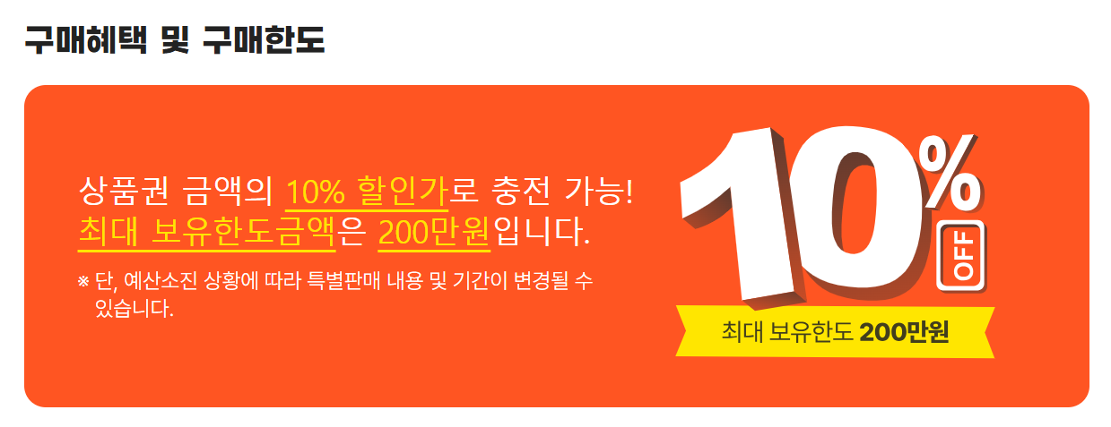 - 혜택 1. 충전 즉시 10% 선할인 (월 최대 20만원 이득!)